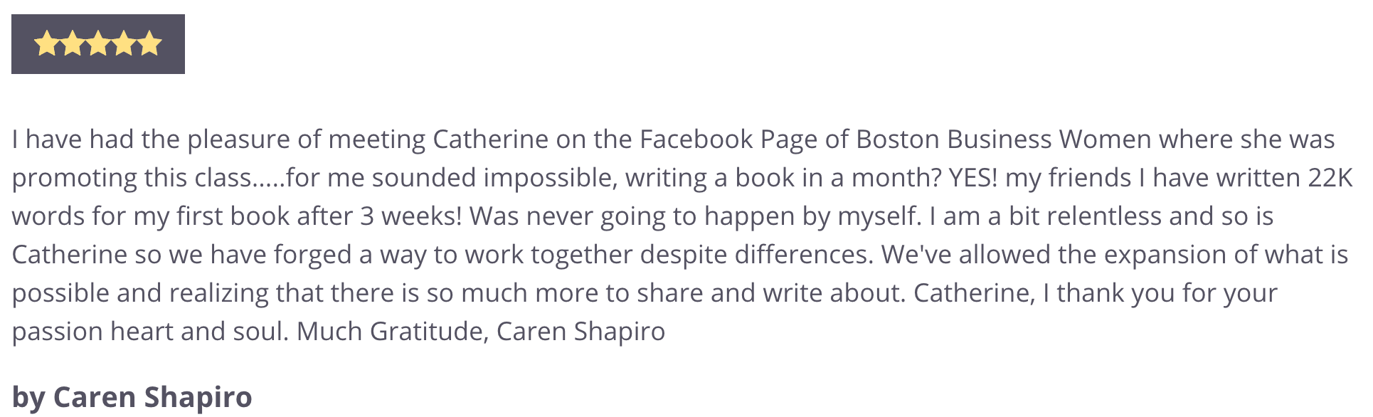 So there is no risk really, do the work, show up with an open mind and watch YOUR Confidence to Write Soar.